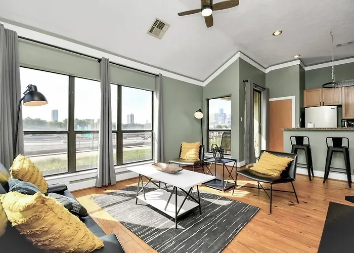 Nestled in the heart of Houston, the 2Bd Townhouse With Houston's City Skyline View presents an inviting blend of modern amenities and breathtaking vistas. This chic retreat is just a short 20-minute stroll from the vibrant Ensemble/HCC area, where a rich tapestry of culture and entertainment awaits. An ideal choice for both leisure and business travelers, this townhouse serves as an oasis of tranquility, while remaining conveniently situated only 20 kilometers from William P. Hobby Airport. Services at the townhouse prioritize guest comfort, offering responsive support and personalized recommendations to enhance your visit. Whether you require assistance with transportation or local insights, the accommodating staff is dedicated to making your stay memorable. Located just a stone's throw away from Houston's top attractions, guests have easy access to lively neighborhoods and stunning parks. With convenient transportation options nearby, the 2Bd Townhouse With Houston's City Skyline View is the perfect base for exploring the dynamic energy of the city, ensuring every guest enjoys a seamless blend of sophistication and comfort.